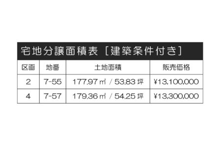 | 土地面積 | 177.97~179.36㎡ | 坪数 | 53.83~54.25坪 |
